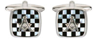 90 2891 - Masonic MoP/Onyx Chequered, embossed emblem - rhodium plate