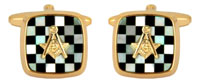 90 2892 - Masonic MoP/Onyx Cheq with 'G' embossed emblem - Gold plate