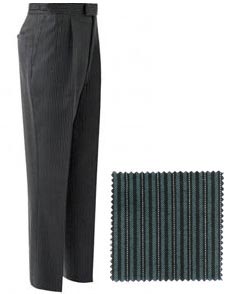 Striped Trousers: 55% polyester 45% wool. Black/grey half lined Plain front trousers with slant side pockets and two button fastening hip pockets. With side adjusters. Dry clean.